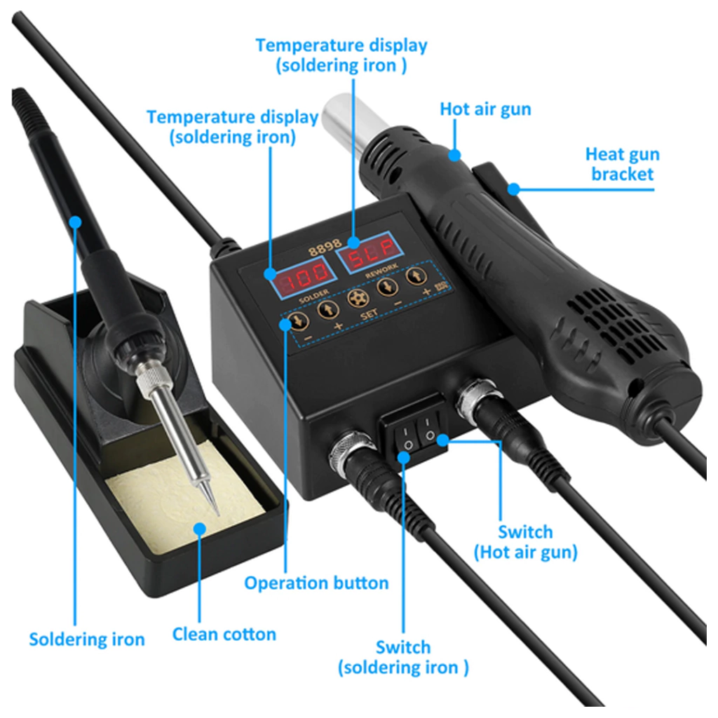 Calentador de aire caliente y soldador 2 en 1 estación de soldadura de retrabajo.