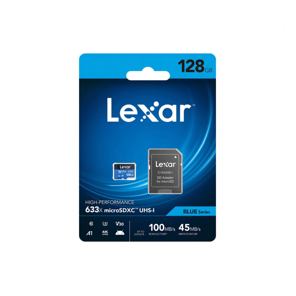 Lexar® High-Performance microSDXC 128GB 633x Blue Series – Clase A1/UHS-I | Alta Velocidad para Full HD y 4K
